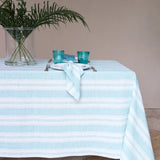 'Riva' Tablecloth Turquoise Striped in Linen by Giardino Segreto