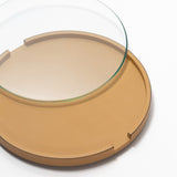 The Gourmet Round Serving Tray in Sky Blue by Giobagnara is a refined expression of Italian artistry and contemporary design. Handcrafted in Italy, this elegant tray features a solid wood base entirely covered in printed calfskin leather, known for its fine texture and luxurious appearance. The removable glass top adds functionality and a touch of modern elegance, making it ideal for both serving and decorative use.