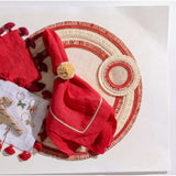 Infuse your table with playful elegance using the Ruffle Edge Straw Coasters with Red Stripe by Joanna Buchanan. Handwoven from natural straw and finished with a charming ruffle edge and bold red stripe, these coasters add personality and texture to any summer setting.