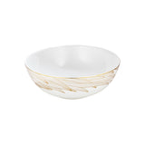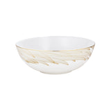Salad bowl crafted from fine porcelain, featuring fluid gold feather motifs that sweep across the surface in soft, luminous lines. Part of the Phenix collection, the generous form is suited for salads, shared dishes, or composed presentations at the center of the table. The contrast between pure porcelain and radiant gold accents creates a balanced and elegant focal point within a refined dining setting.