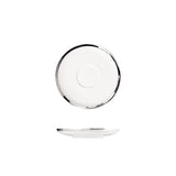 The Stella Platinum small saucer by SIEGER by FÜRSTENBERG is crafted to perfectly complement the single espresso cups in the collection. Handcrafted in Germany from fine white porcelain, it features a lustrous platinum rim that adds a refined touch to coffee service.