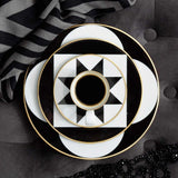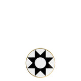 The MY CHINA! Ca’ D’Oro Saucer with Rim for All Single Espresso Cups by SIEGER for FÜRSTENBERG adds refined geometry and elegance to espresso service. Crafted in fine porcelain, the saucer showcases a bold black star-shaped motif against a white background, highlighted by a burnished gold rim. This striking design reflects the Ca’ D’Oro collection’s signature blend of minimalism and opulence.