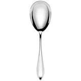 Large serving spoon from the Art Nouveau collection by Sonja Quandt has a wide polished bowl and elongated handle. Plated with 150 grams of silver, it captures light beautifully. Ideal for serving vegetables or side dishes.