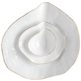 The Set of 12 Pieces Dinnerware Set Golden Rim No2+No5+No6 – Indulge by Sarah-Linda turns porcelain into a sculptural dining experience. Inspired by the tasting of an oyster, each piece combines a richly textured underside with a smooth, organic top, echoing the natural beauty of shells.
