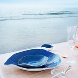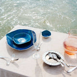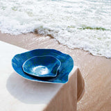 The Set of 2 Large Dinner Plates Blue Lagoon No6 – Indulge by Sarah-Linda captures the shimmering beauty of the sea. Crafted in Limoges porcelain, these sculptural plates feature a textured exterior and a vibrant interior glaze in deep blue and green, reminiscent of ocean depths and lagoon reflections.