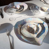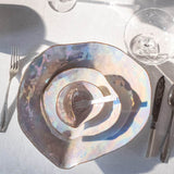 The Set of 2 Large Dinner Plates Pearlescent No6 – Indulge by Sarah-Linda brings a luminous elegance to the dining table. Handcrafted in Limoges, these porcelain plates feature a shimmering iridescent glaze with golden accents, capturing the fluid beauty of seashells.