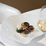 The Set of 2 Large Dinner Plates White No6 – Indulge by Sarah-Linda highlights simplicity and refined craftsmanship. Handcrafted in Limoges, these porcelain plates feature a shell-inspired organic shape that adds subtle artistry to any table.