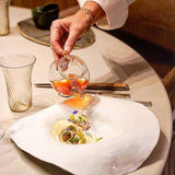This collection of sensual eating tools explores new ways of eating. Taking inspiration in the tasting of an Oyster, the delicate porcelain shapes invite us to indulge and luxuriate at the dining table. The shell-like tools are made to break table taboos in an elegant way: lick, slurp and pick them up to increase the taste experience and immerse yourself in the moment. The tools are richly textured on the bottom and organically smooth on the top.