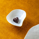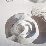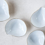This collection of sensual eating tools explores new ways of eating. Taking inspiration in the tasting of an Oyster, the delicate porcelain shapes invite us to indulge and luxuriate at the dining table. The shell-like tools are made to break table taboos in an elegant way: lick, slurp and pick them up to increase the taste experience and immerse yourself in the moment. The tools are richly textured on the bottom and organically smooth on the top.