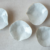 This collection of sensual eating tools explores new ways of eating. Taking inspiration in the tasting of an Oyster, the delicate porcelain shapes invite us to indulge and luxuriate at the dining table. The shell-like tools are made to break table taboos in an elegant way: lick, slurp and pick them up to increase the taste experience and immerse yourself in the moment. The tools are richly textured on the bottom and organically smooth on the top.