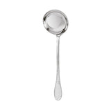 Silver-plated soup ladle made for clean and efficient serving. The deep, rounded bowl holds a generous portion of broth or cream-based soups. Its long handle provides easy reach into larger soup tureens. Beautifully decorated with elegant lauriers motifs on its handle.
