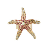 A glittering starfish, paved with vibrant crystals in rose, amber, and clear tones. This napkin ring adds a splash of coastal feel to the table. Perfect for breezy brunches by the beach or sunset dinners.