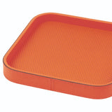 Square Leather Tray "Polo" in Orange, H 3cm, Large by Giobagnara