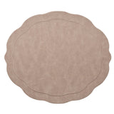 Matte faux leather shapes the Tailored placemat, reimagining the classic oval with a refined wavy edge. Subtle embroidered detailing along the border adds depth and sophistication while maintaining a clean, modern profile. Durable and easy to care for and versatile.