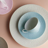 The Minéral Irisé Sky Blue tea cup and saucer by Raynaud brings refined serenity to your tea ritual. Handcrafted in France, this porcelain set features Thierry Cheyrou’s signature nature-inspired relief and a soft iridescent sky blue glaze that plays with the light.