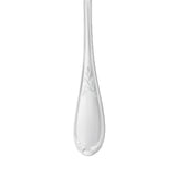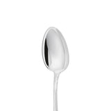 Silver-plated tea spoon with a handle that features elegant laurel motifs and a polished finish, giving it a clean and elegant appearance on the table.