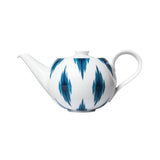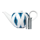 The Paraiso Small Porcelain Teapot with Tea Strainer by Sieger by Fürstenberg is a vibrant piece for modern tea rituals. A highlight of the Paraiso collection, it features bold ikat-inspired motifs in rich blue tones against crisp white porcelain, creating a dynamic yet elegant design.
