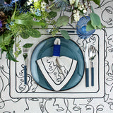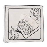 Venus decorative napkins are crafted from fine Italian beige fabric and embroidered with abstract feminine forms in black viscose thread. Their square silhouette brings a sense of quiet sophistication, introducing subtle texture and delicate artistry to the table.