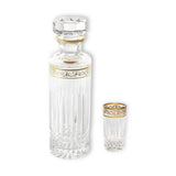 Crafted from the finest crystal, the piece features intricate diamond and beveled cuts that create a radiant interplay of light. A hand-painted gold inlay adorns the rim and detailing, elevating its regal presence. Perfect for serving and preserving vodka or fine spirits, this decanter combines both luxury and practicality, making it a distinguished addition to any collection.