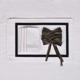 This white cotton placemat features a sleek black stripe along the edges, adding a refined touch to the table. Its versatile design makes it suitable for casual dining as well as more formal gatherings. Made from premium 100% Italian cotton half panama fabric (200g/m²), it offers a soft yet durable texture.