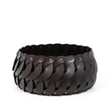 The Alicante Small Round Storage Basket by Pinetti offers a sculptural and refined interpretation of modern storage. Each basket is meticulously crafted using S-shaped regenerated leather elements that interlock to create a distinctive scale-like texture. Every piece is secured with polished chrome pins, showcasing Pinetti’s exceptional attention to craftsmanship and contemporary design.