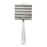 Silver-plated asparagus server from the Art Deco collection. Its handle is characterized by structured, well-defined lines that reflect the clarity of the era’s design language. The head features a flat, elongated profile with precise cutouts that match the piece’s extended silhouette and maintain balanced proportions. Subtle detailing on both sides highlights the expert workmanship and consistent contours associated with Robbe & Berking.