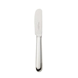 Silver-plated butter spreader from the Dante collection. Its handle follows clear, balanced lines that reflect the collection’s focus on simplicity and proportion. The blade features a smooth, rounded profile suited to the piece’s compact scale while maintaining a defined and intentional form. Subtle detailing supports the precise character associated with the Dante design.