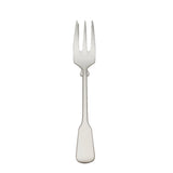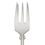 Silver-plated cake fork, part of the Spaten collection. It features an elongated handle with a straight profile that widens toward the base, creating stable balance and a geometric silhouette. The upper section transitions into a sculpted detail shaped by hand, a design element rooted in early 18th-century silverwork.