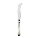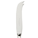 Silver-plated cheese knife, part of the Spaten collection. It features an elongated handle with a straight profile that widens toward the base, creating stable balance and a geometric silhouette. The upper section transitions into a sculpted detail shaped by hand, a design element rooted in early 18th-century silverwork.