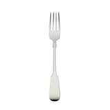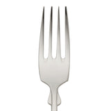 Silver-plated children’s fork, part of the Spaten collection. It features an elongated handle with a straight profile that widens toward the base, creating stable balance and a geometric silhouette. The upper section transitions into a sculpted detail shaped by hand, a design element rooted in early 18th-century silverwork.