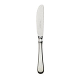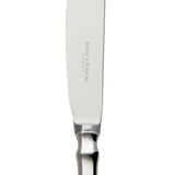 Silver-plated children’s knife, part of the Spaten collection. It features an elongated handle with a straight profile that widens toward the base, creating stable balance and a geometric silhouette. The upper section transitions into a sculpted detail shaped by hand, a design element rooted in early 18th-century silverwork.