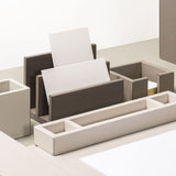 A refined and functional desk accessory, the Leather Envelope Holder Arthur by Giobagnara is crafted with a sturdy wood structure fully covered in premium golf leather. Its clean architectural silhouette features three spacious compartments, offering an elegant way to organise envelopes, correspondence, invitations, or stationery while maintaining a polished and cohesive workspace.