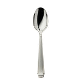Silver-plated menu spoon from the Art Deco collection. Its handle reflects the collection’s structured aesthetic, built around straight surfaces and a defined outline that aligns with early-20th-century design principles. The bowl has a compact, rounded shape. A clearly formed transition between handle and bowl gives the piece a tidy profile and balanced weight.