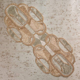 Experience understated glamour with the Palisade Runner. Geometric shapes featuring a delicately beaded gold and silver basketweave-inspired pattern interlock to create a uniquely modern shaped runner. Gemstones are intricately woven throughout to add depth and texture, making it perfect for formal occasions like anniversaries, New Year's celebrations, or milestone events. Pair it with the Palisade Placemat and Coasters for an elegant ensemble, leaving a lasting impression on your guests.