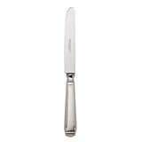 Silver-plated table knife from the Art Deco collection. The handle follows the collection’s structured, early-20th-century aesthetic, with straight surfaces and a defined outline. The transition to the blade is clean and angular, characteristic of the collection’s precise shaping. The blade has a smooth cutting edge designed for general table use, with balanced weight that supports steady handling during main-course service.