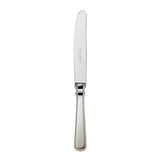 Silver-plated table knife, part of the Spaten collection. It features an elongated handle with a straight profile that widens toward the base, creating stable balance and a geometric silhouette. The upper section transitions into a sculpted detail shaped by hand, a design element rooted in early 18th-century silverwork.