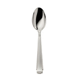 Silver-plated table spoon from the Art Deco collection. The design reflects the collection’s geometric character, defined by structured lines, stepped contours and a balanced architectural silhouette inspired by late-1920s metalwork. The spoon features a deep, rounded bowl suited for generous portions, while the handle maintains clear linear edges and a precise transition toward the bowl.