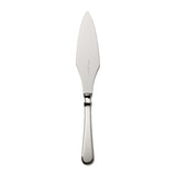 Silver-plated tart knife, part of the Spaten collection. It features an elongated handle with a straight profile that widens toward the base, creating stable balance and a geometric silhouette. The upper section transitions into a sculpted detail shaped by hand, a design element rooted in early 18th-century silverwork.