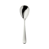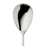 Silver-plated vegetable server from the Dante collection. Its handle follows clear, balanced lines that reflect the collection’s focus on simplicity and proportion. The server head features a broad, rounded profile that fits the piece’s larger scale while maintaining a defined and intentional form. Subtle detailing supports the precise character associated with the Dante design.