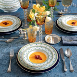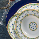 The Dinner Plate – Allée du Roy by Raynaud reflects the elegance of 18th-century French porcelain while embodying the refinement of modern Limoges craftsmanship. Adorned with a trellis entwined with laurel crowns and delicate blue cornflowers, its design recalls the splendor of the royal tables of Versailles.