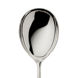 Alt-Chippendale large compote/ salad serving spoon features a broad, smooth bowl ideal for portioning salads, fruit, and side dishes. Its handle carries the collection’s signature semicircular contours on both sides, finished in silver plate for an elegant presence at the table.