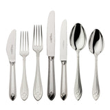 Arcade 84-piece silver-plated cutlery set. Elegant silver bands, graceful lines, and Mediterranean-inspired refinement.
