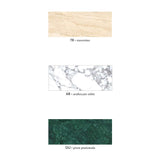 Marbles available: Arabescato White, Green Guatemala, Travertino (shown)