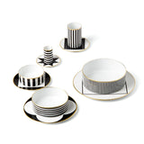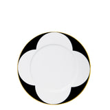 The MY CHINA! Ca’ D’Oro Dessert Plate with Rim by SIEGER for FÜRSTENBERG is a striking piece that brings geometric rhythm and refined luxury to the dining table. Made of fine porcelain, it features a bold black and white border with an architectural petal-like motif, accentuated by a delicate band of burnished gold around the rim.