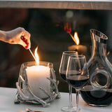 The deer antlers bring natural charm and alpine character, while the sleek glass allows candlelight to shine through beautifully. Suitable for tealights or small pillar candles, the 15 cm height makes it ideal for layering with other decorative elements on dining tables, console tables, or fireplace mantels.