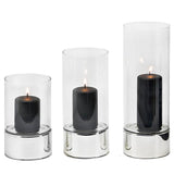The interplay between the shiny metal and clear glass creates a classic, versatile look that suits both traditional and contemporary interiors. Ideal for pillar candles, the Granada hurricane lamp softly diffuses candlelight while adding a polished decorative accent.