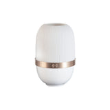The large candle holder in white with gold band from Haviland’s Infini White collection is a luxurious decorative piece that fuses timeless Limoges porcelain craftsmanship with contemporary elegance. Handcrafted in France, the piece showcases the collection’s iconic counter-relief engraving, a refined linear pattern that adds texture and depth to the pristine porcelain surface.