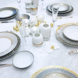 The large candle holder in silver from the Infini White collection by Haviland is a statement décor piece that brings luminous elegance to refined interiors. Handcrafted in Limoges from exquisite white porcelain, it features the collection’s iconic counter-relief engraving, delicate linear textures that elevate the minimalist design. The piece is accented with a silver-finish top, adding a sleek, metallic touch that enhances the porcelain's brilliance.