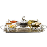 The refined handles and intricate detailing reflect Greggio’s timeless artistry, while the thoughtful layout allows for the presentation of accompaniments such as lemon wedges, eggs, blinis, and condiments in impeccable style.