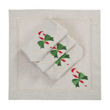 Create a luxurious dining atmosphere with these exquisite Napkins by Roseberry Home, exquisitely crafted from Italian beige cotton and elegantly embroidered with the motif of St. Nicholas and a delicate border. Set of 6 'Candy Cane Mirha' Napkins - a luxurious addition to your home.
